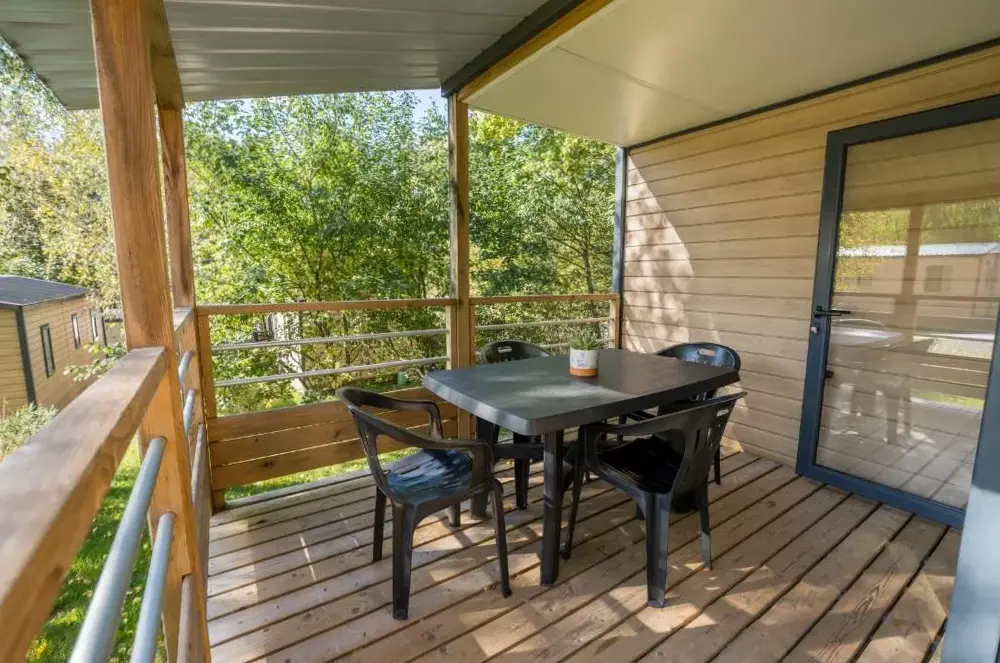 More information about Gîte 4 à 10 persMobil Home familial au Camping PRE VOLOGNE offers family-friendly accommodations situated in Granges-sur-Vologne, France. The site features a green environment near the Vologne river, providing a tranquil atmosphere for visitors. Guests can enjoy proximity to several attractions including Gérardmer Lake just 9 kilometers away and Le Haut du Tôt Ski Lift within 10 kilometers.